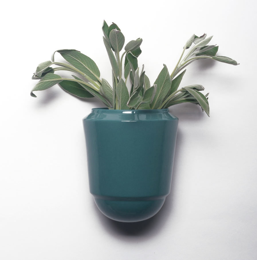 Herba is onderdeel van de Suspense Wandcollectie. De Suspense wandcollectie is voorzien van een handig, waterdicht ophangsysteem. Hierdoor zijn de producten gemakkelijk in gebruik en ook nog eens onderling uitwisselbaar. Geen geknoei meer aan de wand met het watergeven van je planten, want je pakt de pot zo van de muur en hangt hem daarna heel gemakkelijk weer terug. De wandcollectie bestaat uit porseleinen bloempotten, vazen, een klok en een wandlamp.